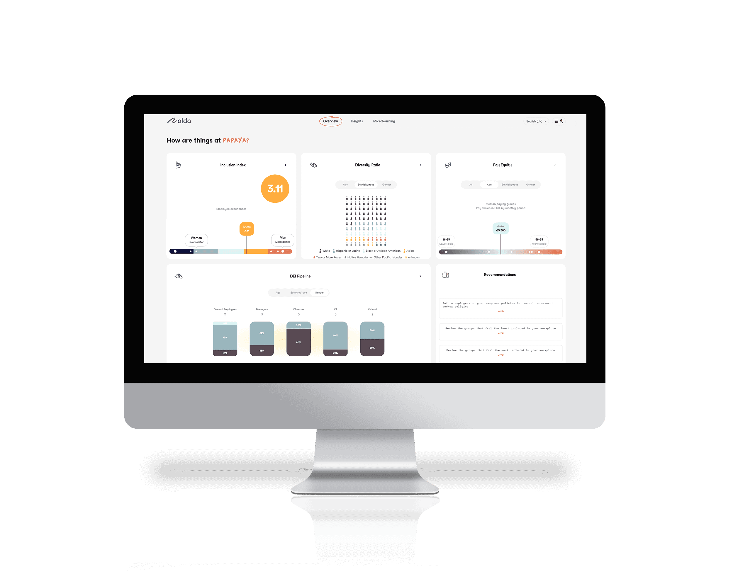 Using Alda Intelligence, the platform tailors recommendations and action plans just for you, aligning with your goals. Plus, our benchmarking feature offers valuable insights, letting you compare your data against our data base for added perspective and growth.